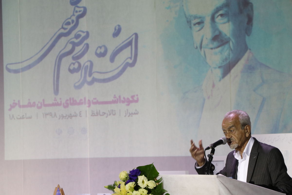مدیرکل فرهنگ و ارشاد اسلامی فارس در این مراسم گفت: امروز به یمن بزرگداشت مردی از دیار فرهنگ و هنر گردهم آمدیم تا پاس بداریم هنر و منحصر به فرد بودن و بزرگ بودنش را.